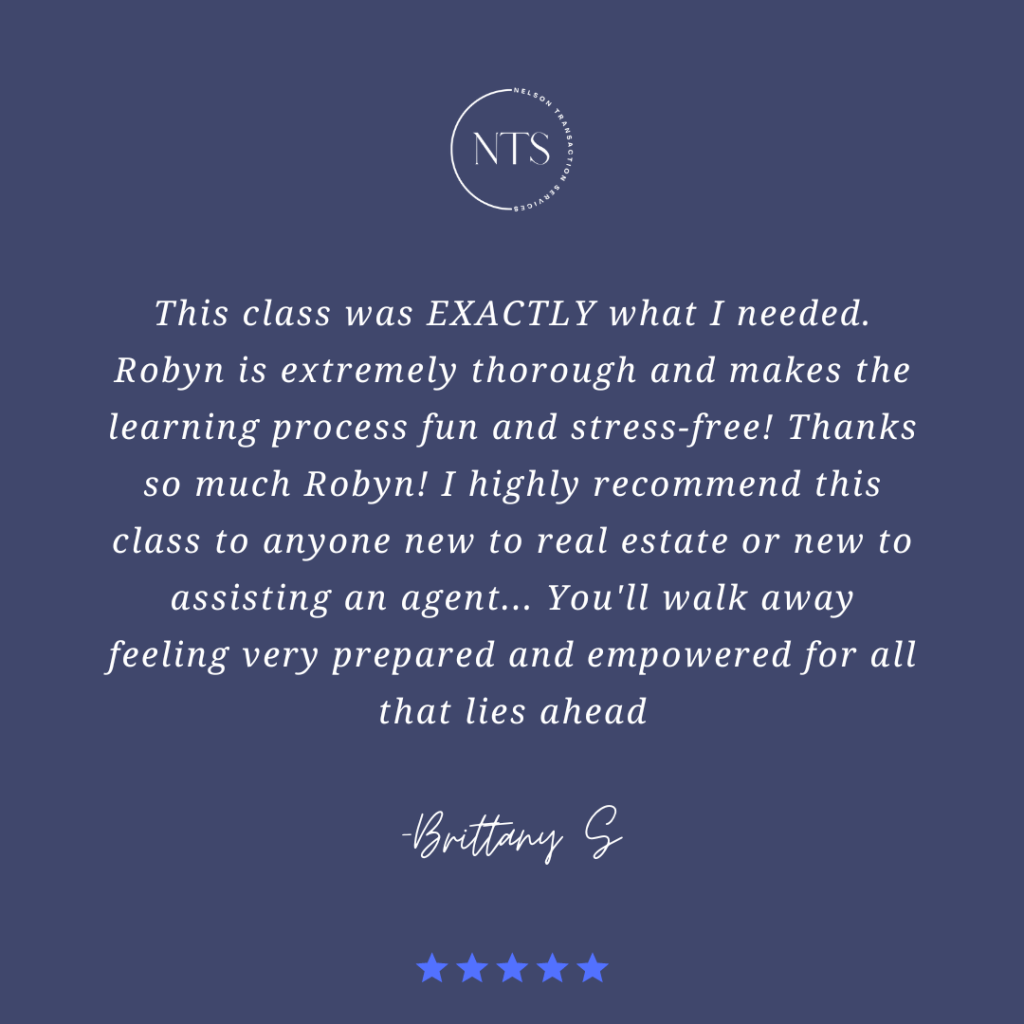 Are you interested in learning more about becoming a Real Estate Transaction Coordinator? You’re in the right place. Nelson Transaction Services provides online training and education classes for those looking to join the entrepreneurial world of Real Estate Transaction Coordination.